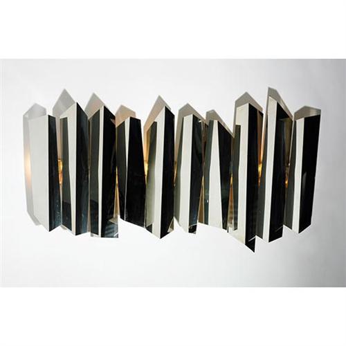 Studio Reggiani<BR>applique<BR>Italy, c. 1975<BR>mirror polished stainless steel, enameled steel<BR>66 w x 6.5 d x 35.5 h inches<BR><BR>Condition of the item is not included in this description. Condition reports are available from Wright upon request. Wright strongly recommends that you review a condition report for each item on which you plan to bid.