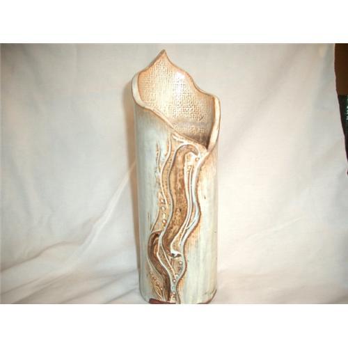 NICE CREAMY COLOR VASE AND BROWN BEUTIFULL STUDIO VASE SIGNED 9" TALL GREAT CONDITION