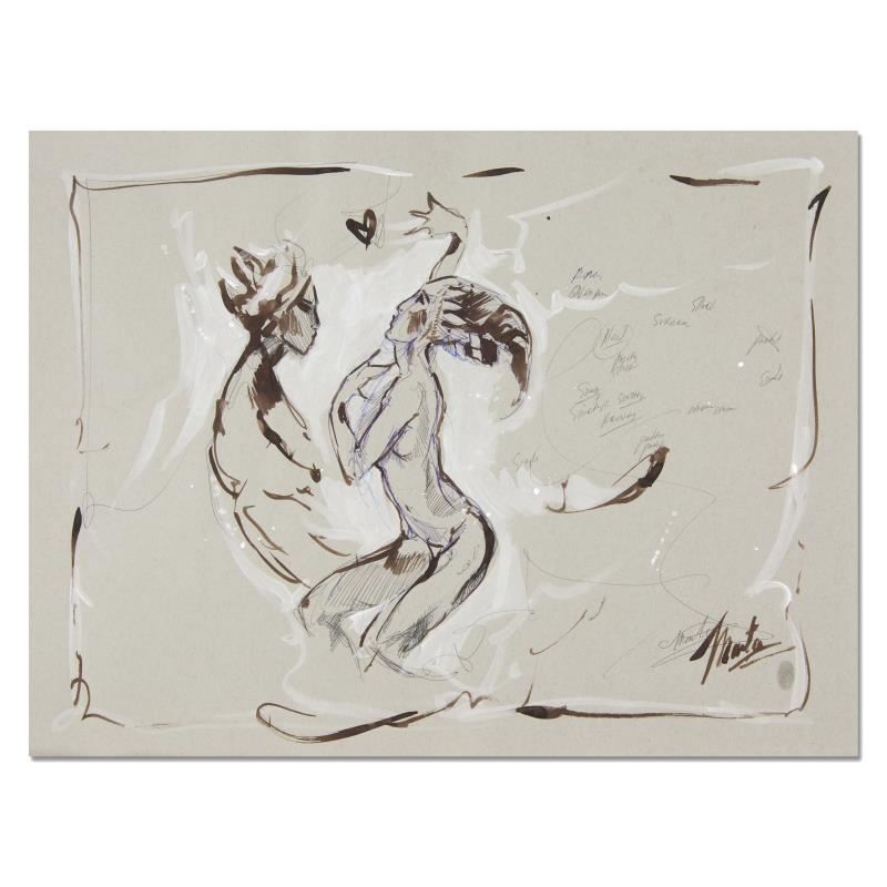 "Study 17" is an original ink sketch on paper, hand signed and thumb printed by Marta Wiley. Includes Certificate of Authenticity. Measures approx. 24" x 18" (image).