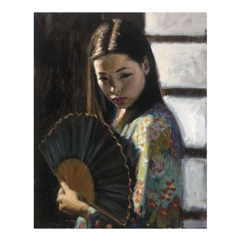 "Study For Japanese Girl" is a hand embellished limited edition giclee on stretched canvas by Fabian Perez. The piece is numbered and hand signed by the artist and comes with a Certificate of Authenticity. Measures approx. 25" x 20" (image). Please allow 5 additional business for items that include canvas stretch or framing.