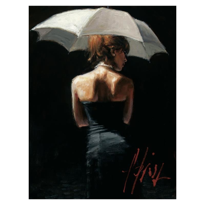 "Study For Woman with White Umbrella" is a hand embellished limited edition giclee on stretched canvas by Fabian Perez. The piece is numbered and hand signed by the artist and comes with a Certificate of Authenticity. Measures approx. 18" x 14" (image). Please allow 5 additional business for items that include canvas stretch or framing.