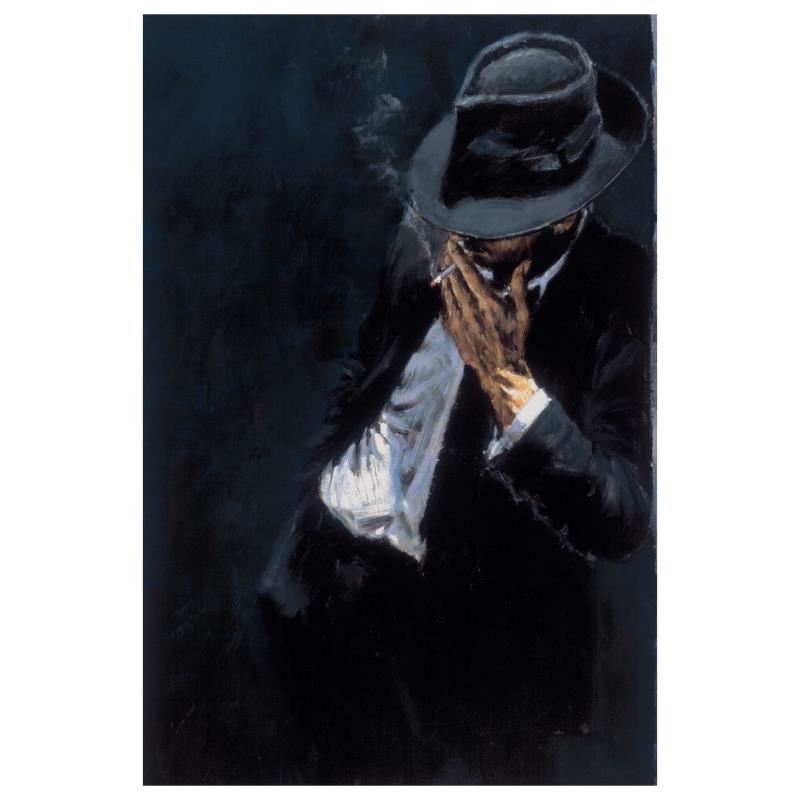 "Study For a Man in Black Suit" is a hand embellished limited edition giclee on stretched canvas by Fabian Perez. The piece is numbered and hand signed by the artist and comes with a Certificate of Authenticity. Measures approx. 16" x 11" (image). Please allow 5 additional business for items that include canvas stretch or framing.