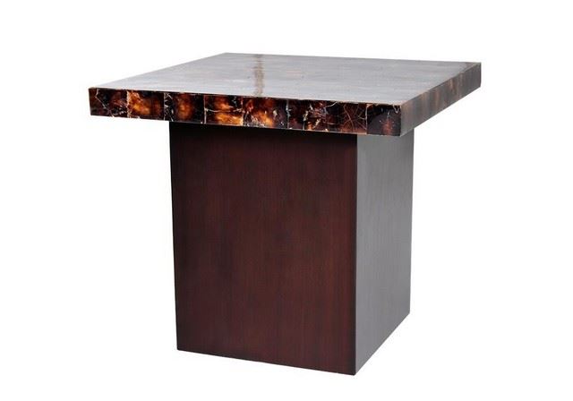 Study in Brown Tortoise Side Table - Bring the gentleman’s lounge to you. With deep browns and leather, the masculine tones of the Study in Brown Collection combines the stateliness of a study with the comfort of a cigar club. Men’s cigar lounge, Poker Room, Men’s Room. Dimensions: 2' W x 2' D x 3'6'' H. Rental price associated with this item $75.00.