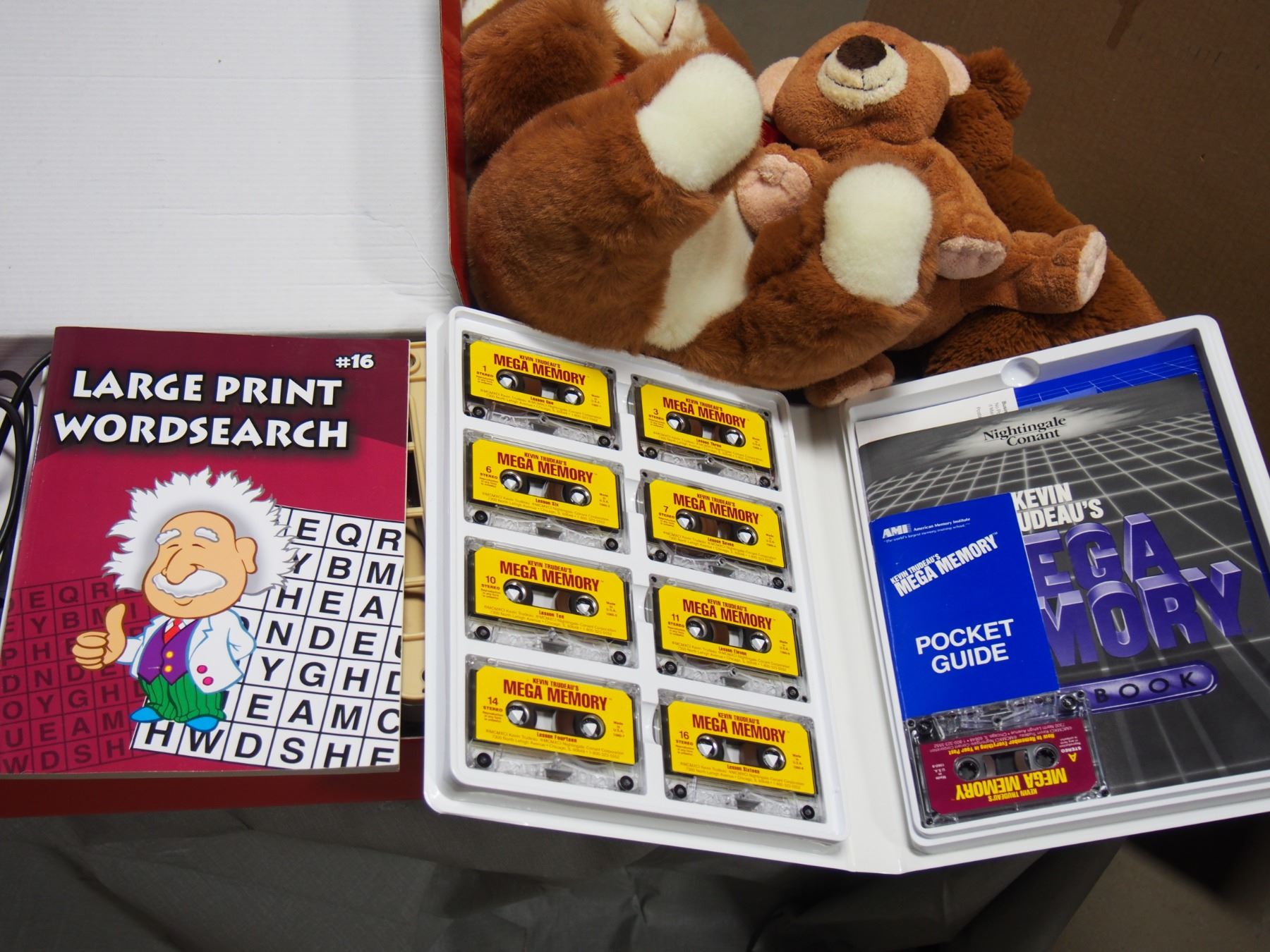 Stuffed Animals, Ho Physio DeStress Belt, Books, Mega Memory Cassette Tape Set