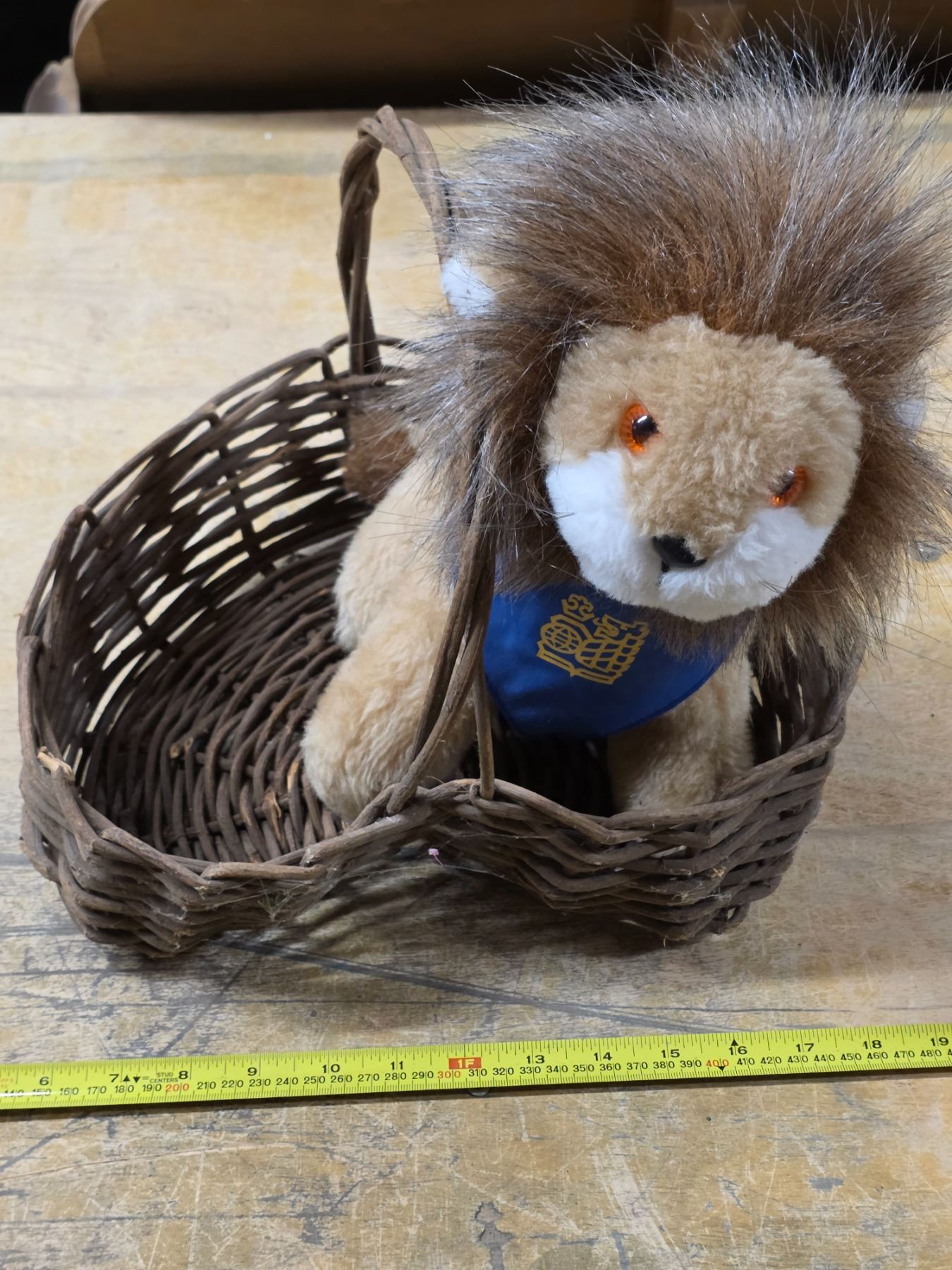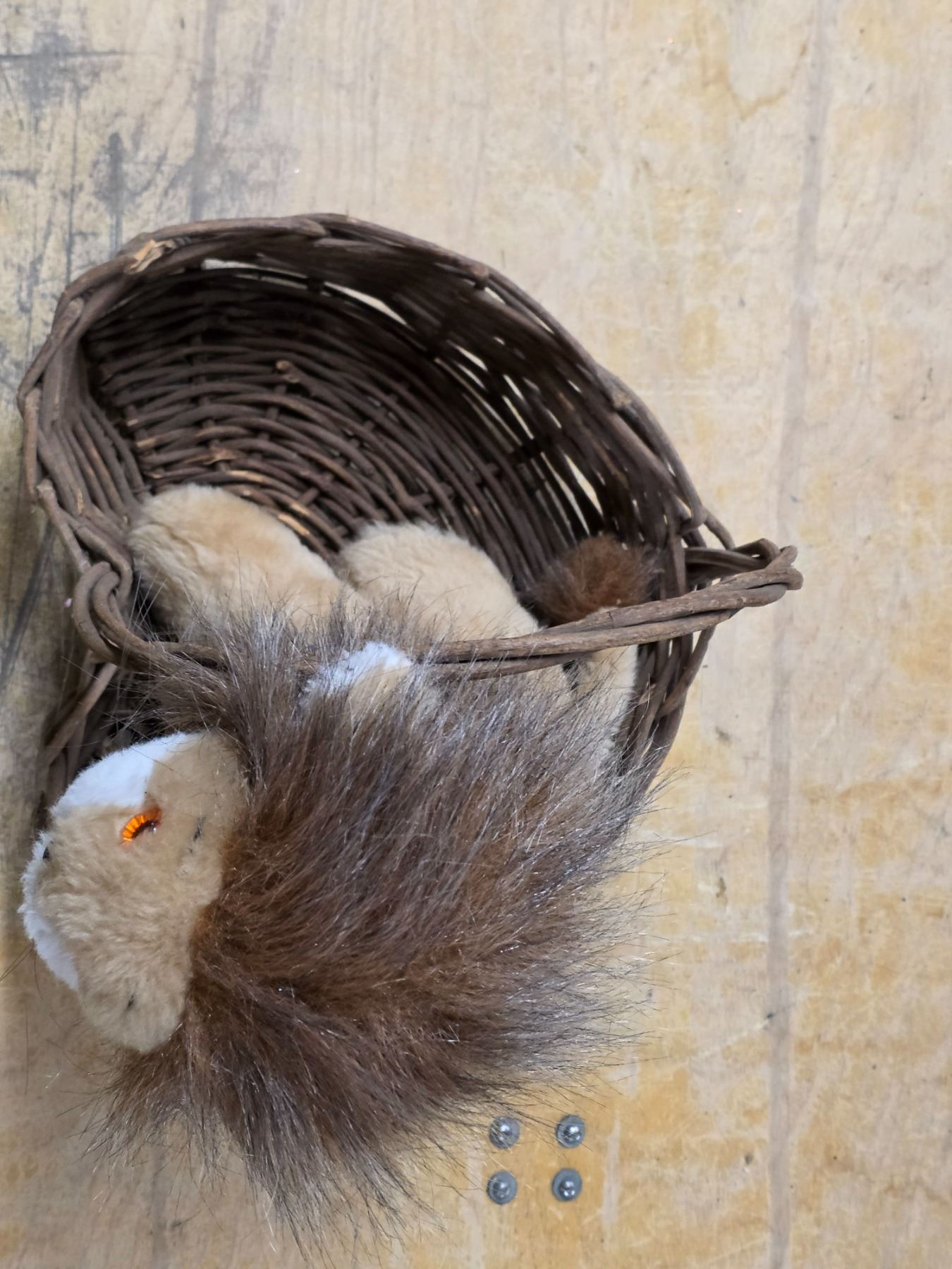 Stuffed toy and wicker basket