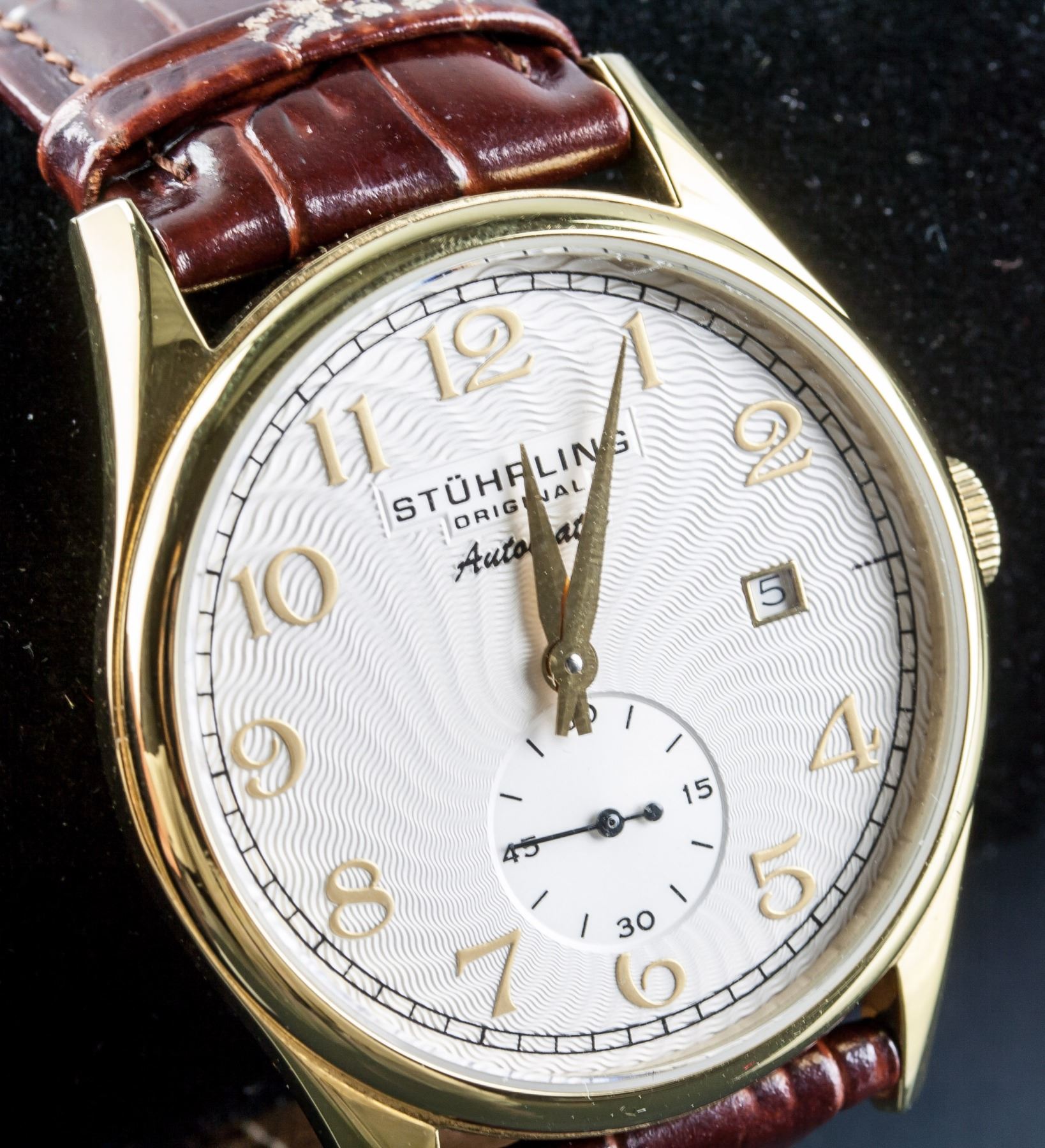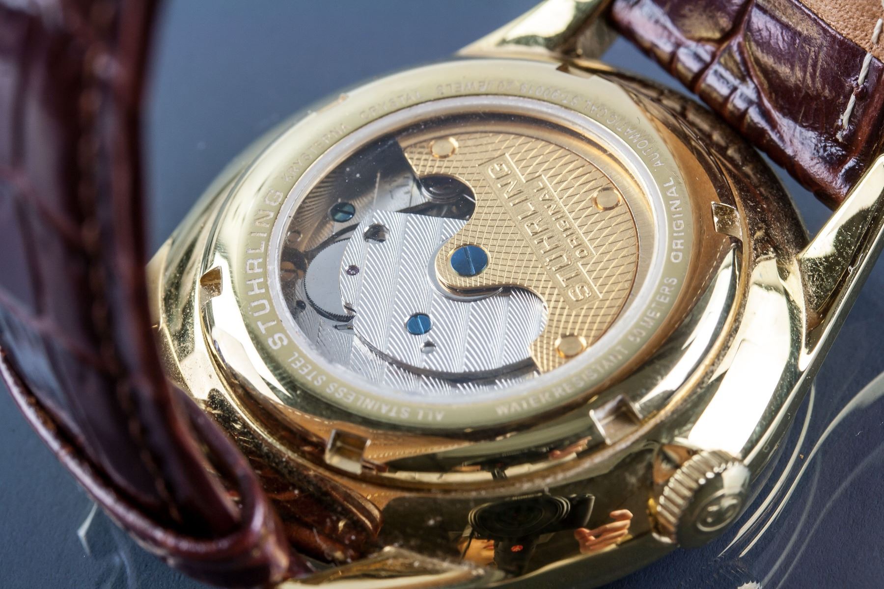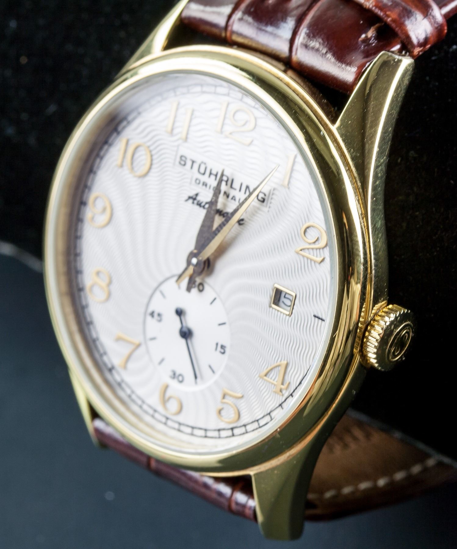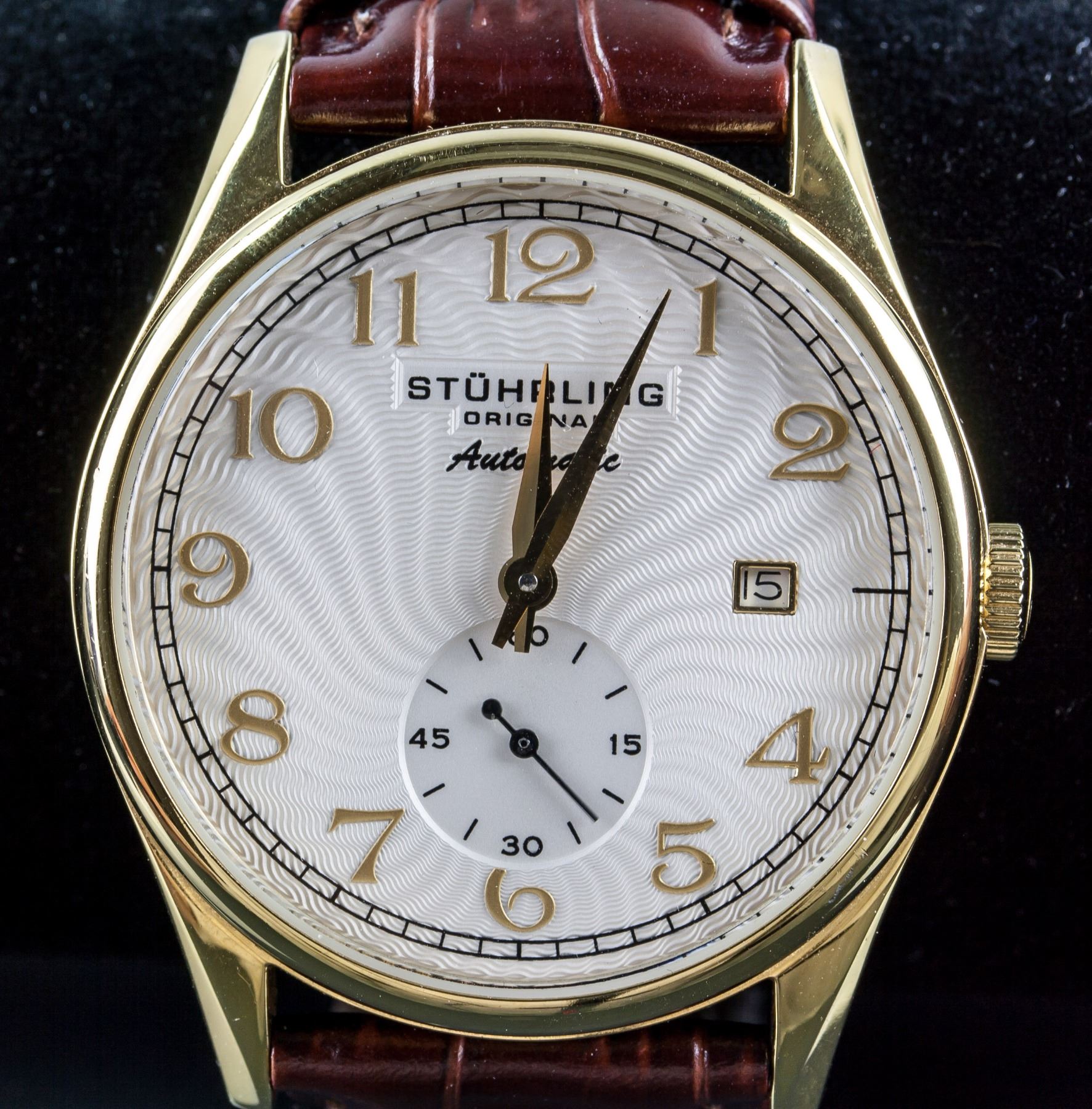 Stuhrling original men's automatic stainless steel watch; water resistant up to 50 meters; CAL.St-90018; with brown genuine leather band