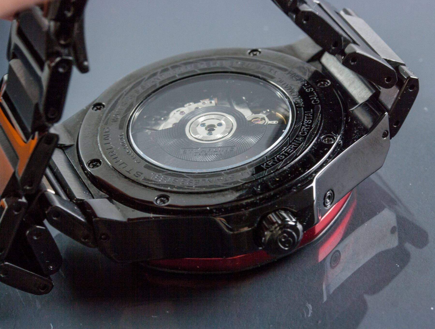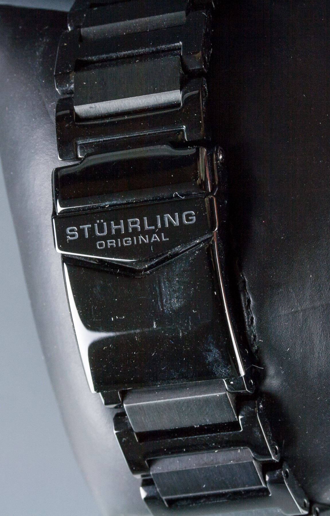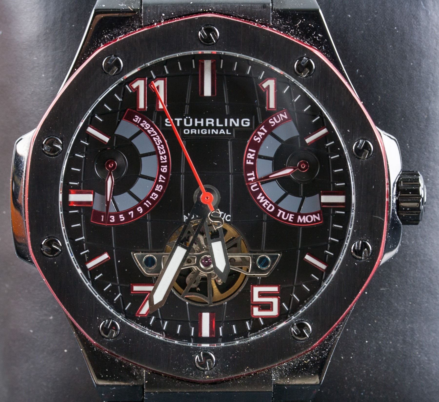 Stuhrling original men's automatic red and black automatic watch; stainless steel, water resistant up to 100 meters; CAL.ST-92504; with black stainless steel band