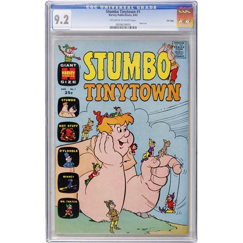 <B>Stumbo Tinytown #1 File Copy (Harvey, 1963) CGC NM- 9.2 Off-white to white pages.</B></I> Fun giant-size comic book had Hot Stuff and other backup features. Overstreet 2006 NM- 9.2 value = $230. CGC census 3/07: 1 in 9.2, 1 higher. <I> From the Cary and Cheryl Porter Collection.</B></I><BR><BR><b>Shipping:</b> Comics - Slabbed (certified) (<a target="_blank" href="http://www.heritageauctions.com/common/shipping.php">view shipping information</a>)