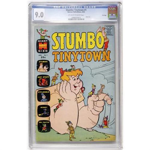 <B>Stumbo Tinytown #1 File Copy (Harvey, 1963) CGC VF/NM 9.0 Off-white to white pages.</B></I> Giant size issue. Overstreet 2007 VF/NM 9.0 value = $173; NM- 9.2 value = $240. CGC census 12/07: 3 in 9.0, 3 higher.<BR><BR><b>Shipping:</b> Comics - Slabbed (certified) (<a target="_blank" href="http://www.heritageauctions.com/common/shipping.php">view shipping information</a>)