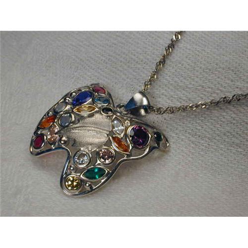 <tr><td>Title:Stunning 14K WG Gold Multigem Butterfly Pendant</td></tr>
