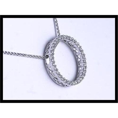 This remarkable 18k white gold diamond necklace contains 35 diamonds. The pendant weighs 5.0 grams and measures 21mm (13/16") around. The chain is 410mm (16 1/2") long. This is a great classy, yet modern peice that would make a great addition to anyones collection.