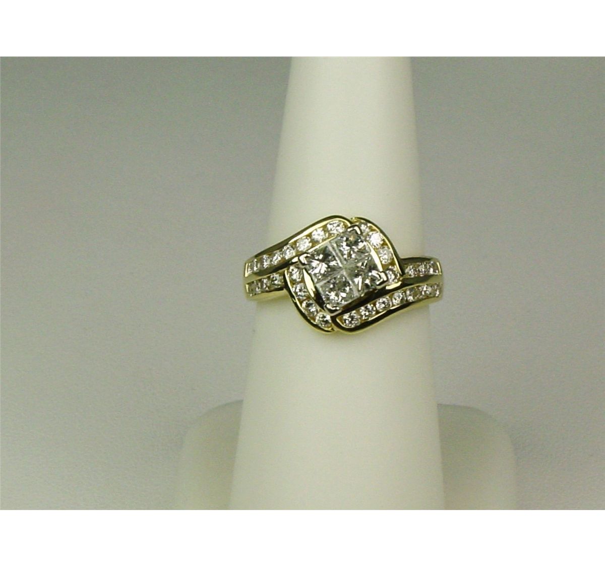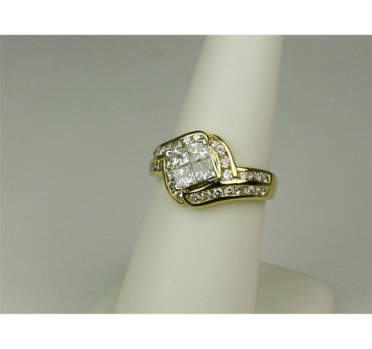 Invisible set with 4 princess cut diamonds weighing approx 0.60 carats of F-G colors and SI clarity and channel set with 32 round diamonds weighing approx 0.80 carats of F-G colors and SI clarity. Retails $2,000-$3,000.