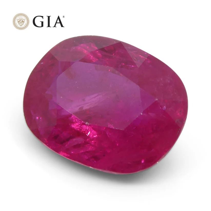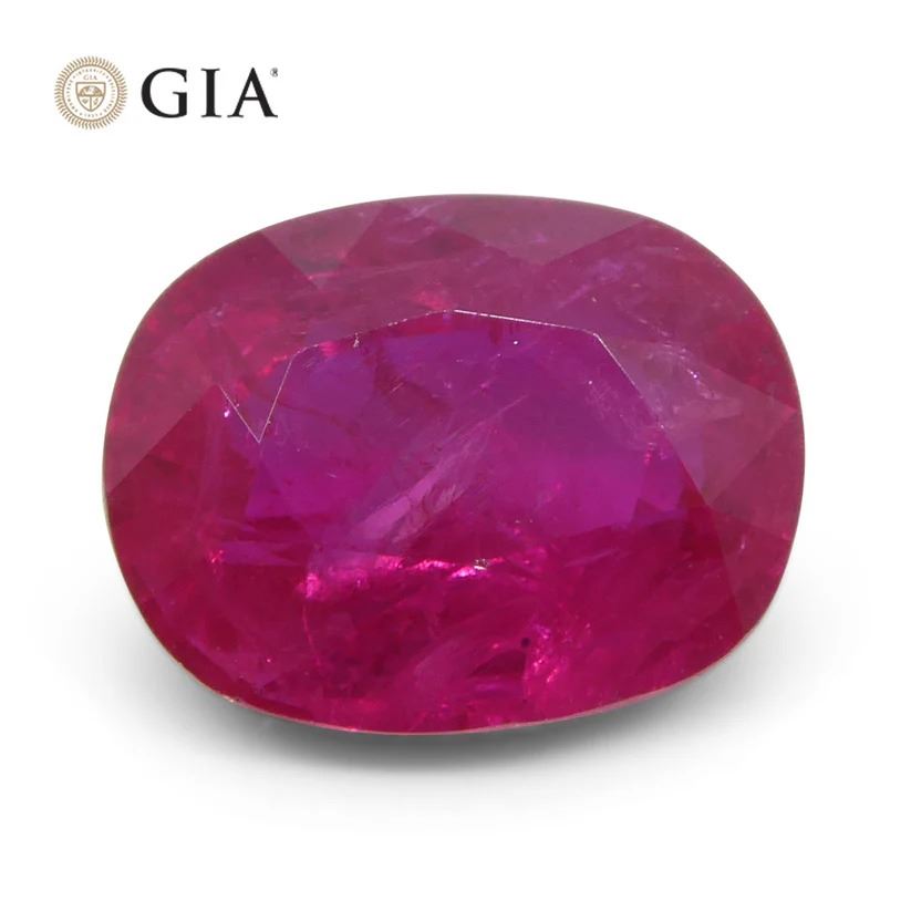 Lovely 4.19 Ct Vivid Red Ruby is a cushion brilliant cut measuring 10.68 x 8.34 x 4.96 mm. Reveals a medium tone with stunning, vivid saturation. This investment-grade ruby is sure to turn heads! Origin: Mozambique. Treatment: Heat only. Please see the certification for additional information.
