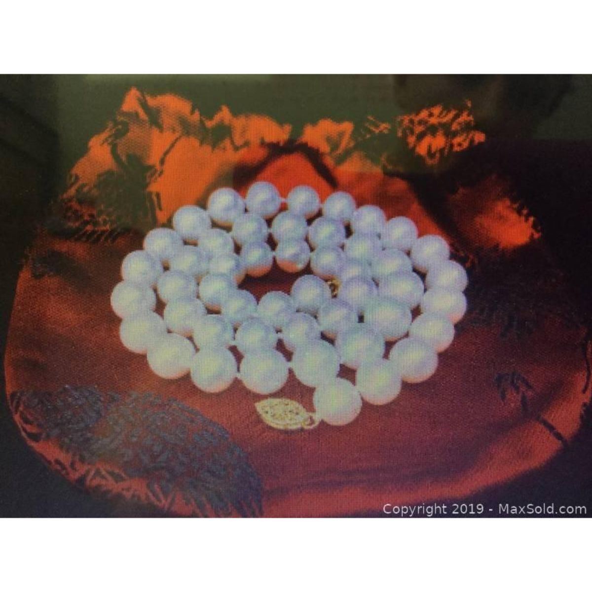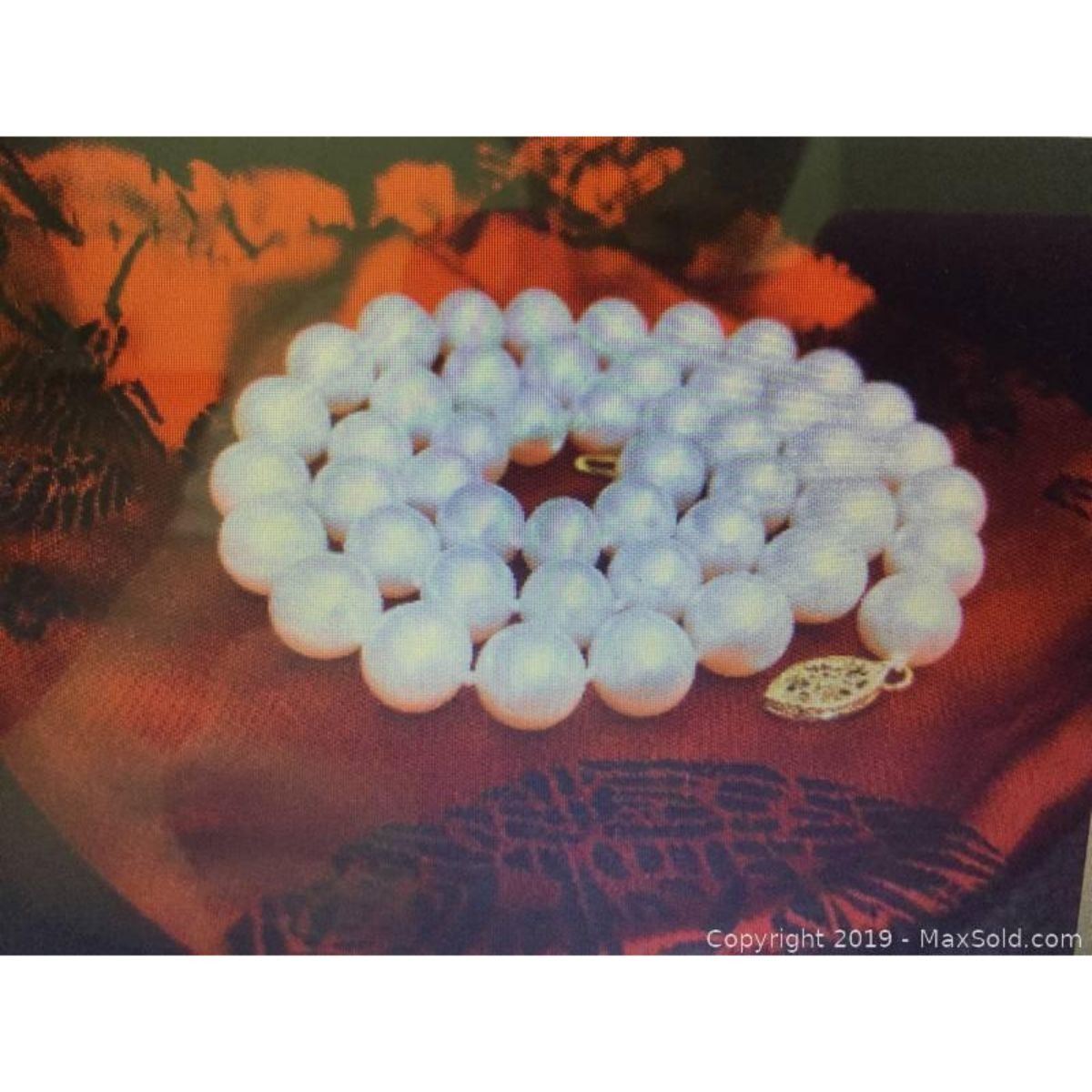 Stunning, Ladies 49 Round Pearl 18 inch Necklace With 14k Gold Clasp. Comes with Bag. See Photos for Further Inquiry.