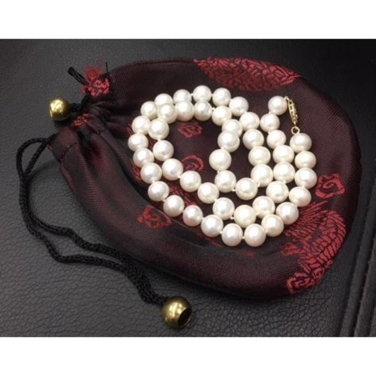 Stunning, Ladies 49 Round Pearl 18 inch Necklace With 14k Gold Clasp. Comes with Bag. See Photos for Further Inquiry.
