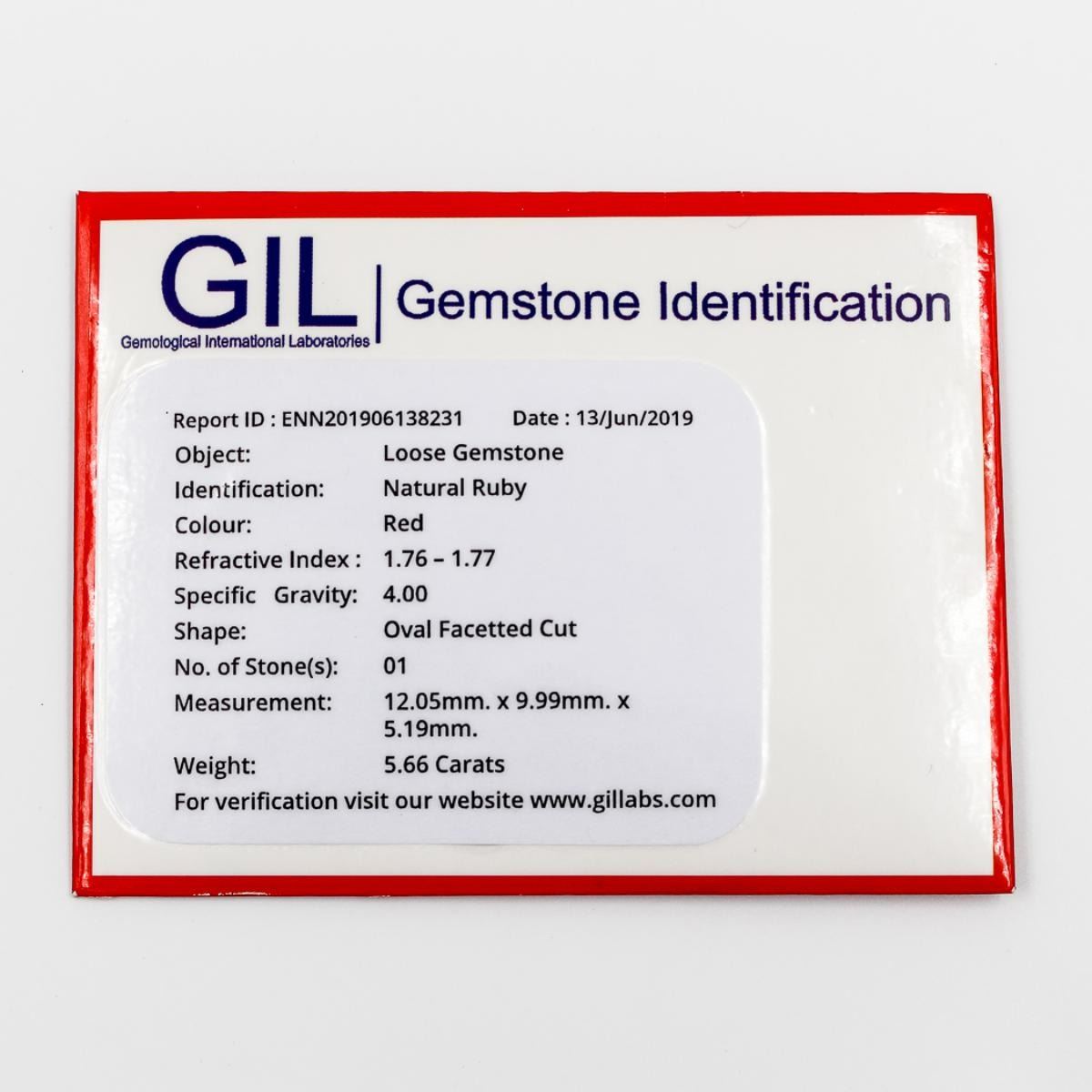 Stunnung 5.66 Ct Natural Certified Mined From The Earth Red Ruby Gemstone.Oval Cut Measuring 12.01 x 9.96 x 5.18 mm. Eye Clean. Ready To Mount. Treated To Enhance Clarity