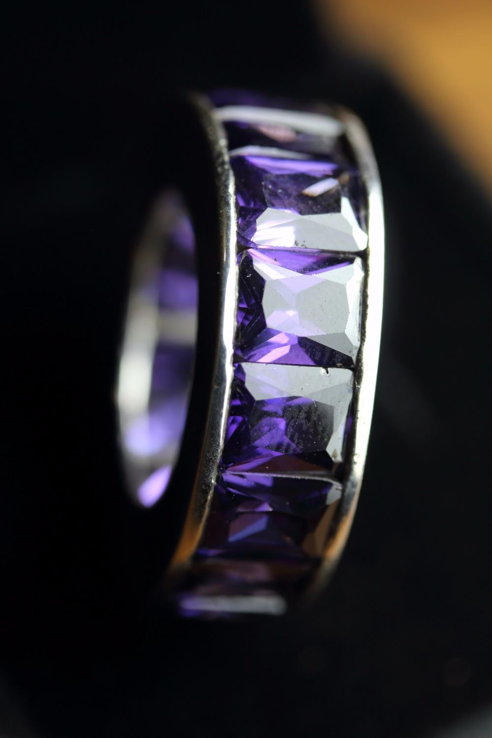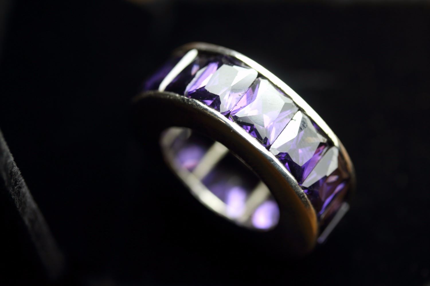 Stunning Amethyst Eternity Band 45.25 Carats.......Heavy...stylish eternity band.....925 Sterling Silver....Over 7 grams.....Eternity Band Size 6.75 & 7....(Note - Please advise if you have any ring size as we will custom make your ring size for you)
