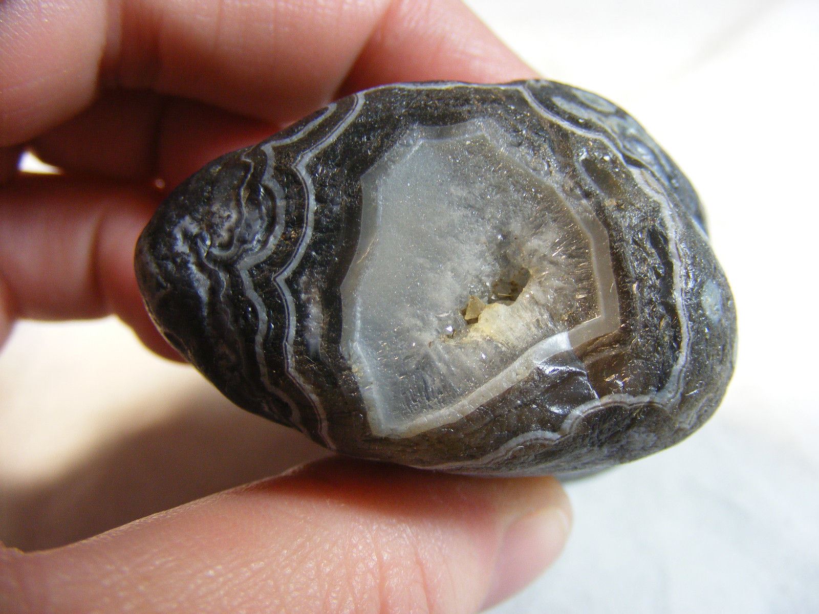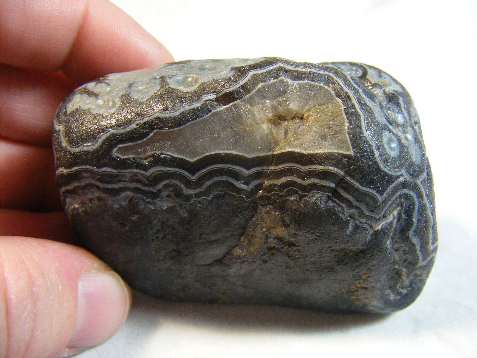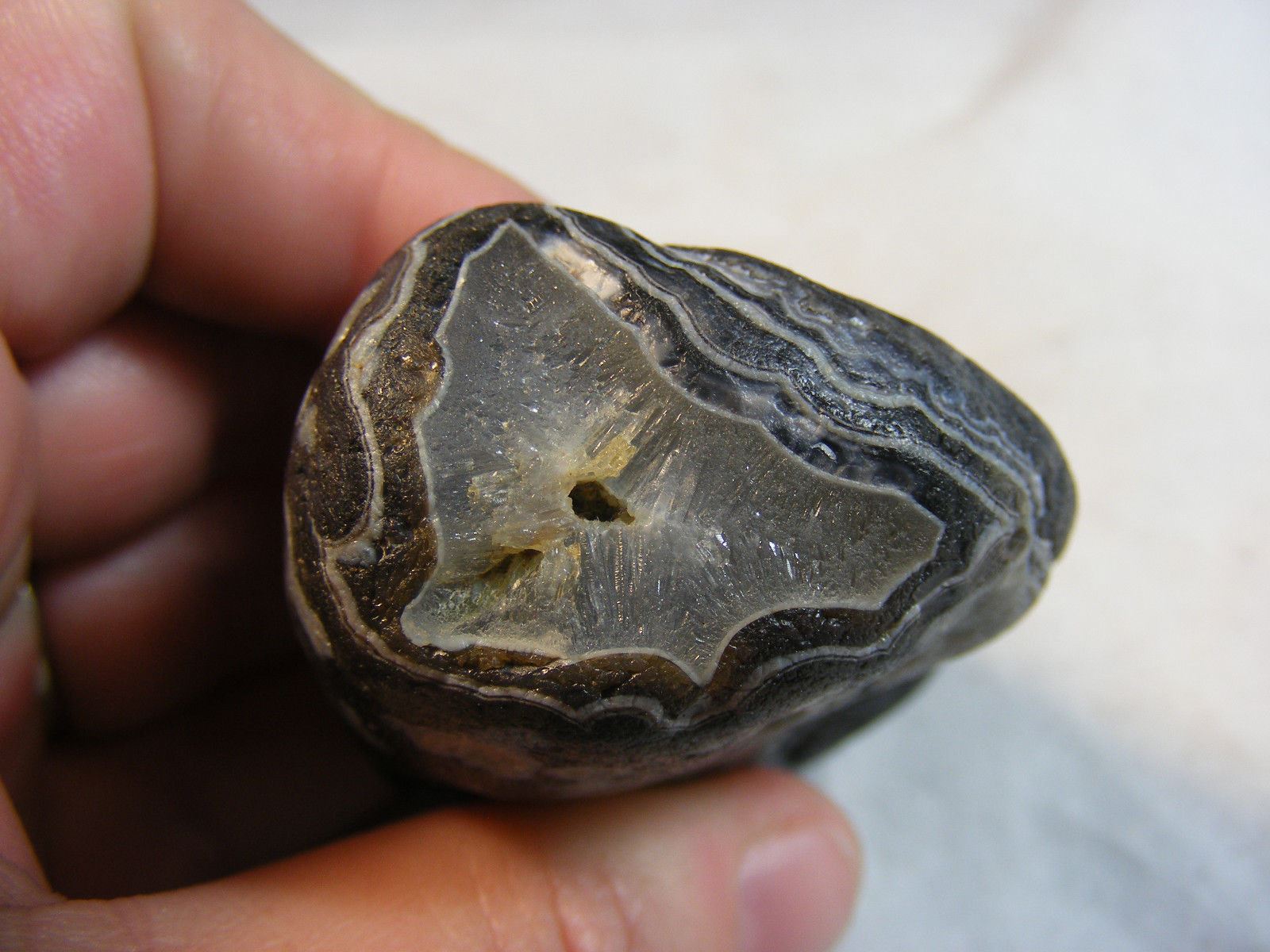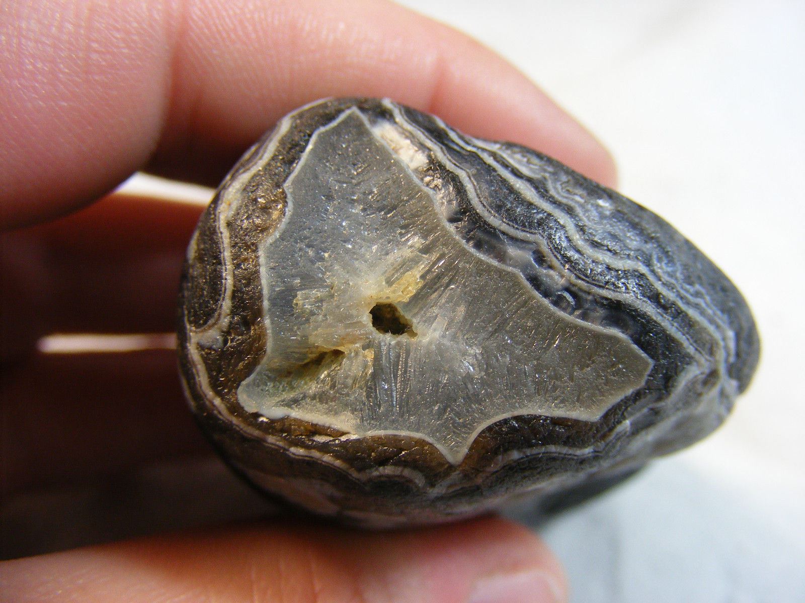 Absolutely stunning Black and White Fairburn Agate from South Dakota. Great patterns, great contracts in colors. Both ends of agate are full faced with whole through the agate. Very interesting.