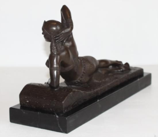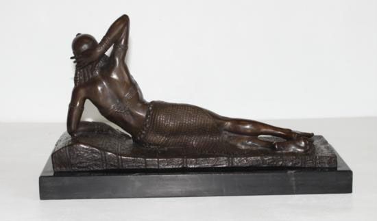 Cleopatra, Bronze Sculpture, After A. Leonard, 13"H x 16"W x 7"D 20 lbs This bronze sculpture was produced using the "Lost Wax" casting method. The"Lost Wax" Cast method is the most precise metal casting technique in existence, ensuring exquisite detail of the original host model which is usually sculpted in clay or wax. This "Lost Wax" casting method is an extremely labor intensive and expensive process, but the end results produce a Heirloom Quality Masterpiece!