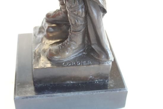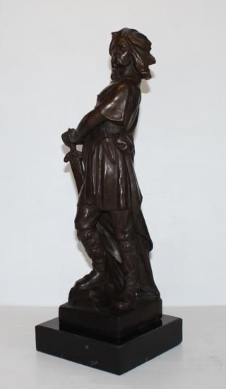 Vercingetorix French Warrior King Bronze Sculpture, After Cordier 18"H x 6 1/2"D x 6 1/2"W 20 lbs. This bronze sculpture was produced using the "Lost Wax" casting method. The"Lost Wax" Cast method is the most precise metal casting technique in existence, ensuring exquisite detail of the original host model which is usually sculpted in clay or wax. This "Lost Wax" casting method is an extremely labor intensive and expensive process, but the end results produce a Heirloom Quality Masterpiece!