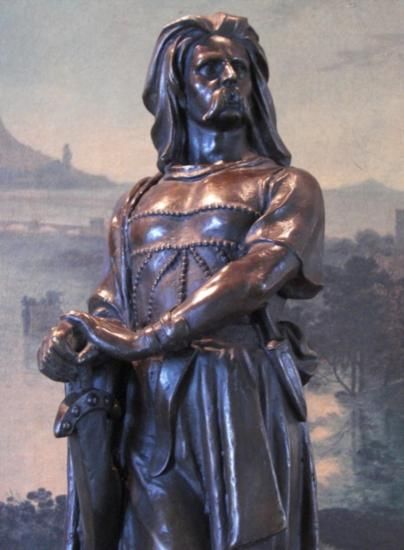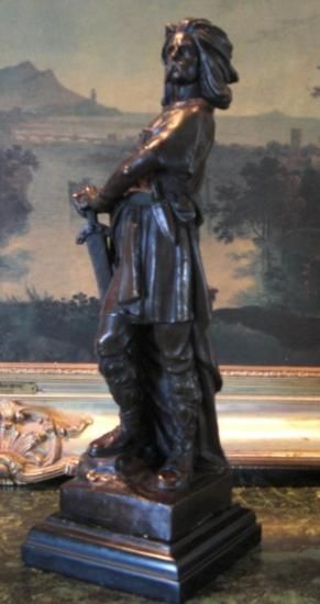 Vercingetorix French Warrior King Bronze Sculpture, After Cordier 18"H x 6 1/2"D x 6 1/2"W 20 lbs. This bronze sculpture was produced using the "Lost Wax" casting method. The"Lost Wax" Cast method is the most precise metal casting technique in existence, ensuring exquisite detail of the original host model which is usually sculpted in clay or wax. This "Lost Wax" casting method is an extremely labor intensive and expensive process, but the end results produce a Heirloom Quality Masterpiece!