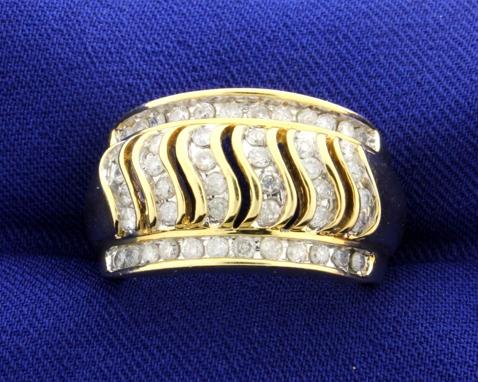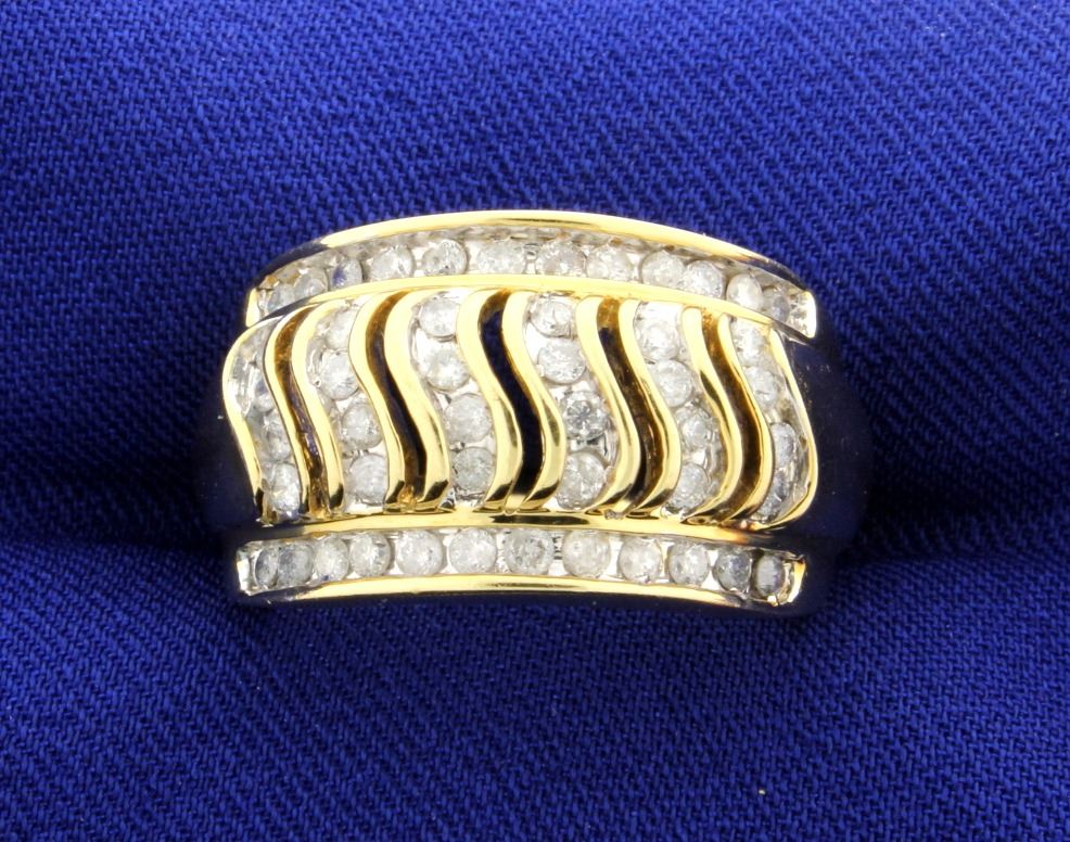 14k Yellow Gold. 48 Diamonds, approximately 1.5 carat total weight. Diamonds are H Color, I-1 Clarity. Size 8. 10.8g