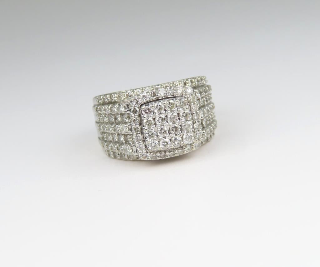 featuring 122 round pave set Diamonds weighing approx. 3.00 carats with F-G colors and VS/SI clarity set in a finely crafted custom setting in 14 karat white gold hallmarked D&D. Retail $5,000-$6,000