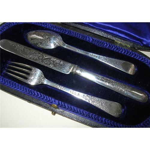 An absolutely exquisite example of an Edwardian sterling or solid silver three piece child's place setting, in England know as a Christening set but equally appropriate for any special event for one of the special little ones in your life.