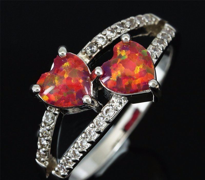 Stunning Fire Double Heart Opal Ring....size 7 & 8 available.