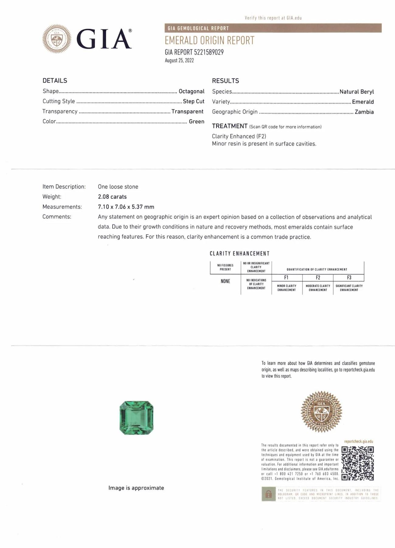 Impressive VVS1 Eye Clean 2.08 Ct Green Emerald measuring 7.10 x 7.06 x 5.37 mm with an emerald cut. Showcases a fine green hue and strong saturation that would fit perfectly as a centerpiece! Origin: Zambia. Please see the certification for further details.