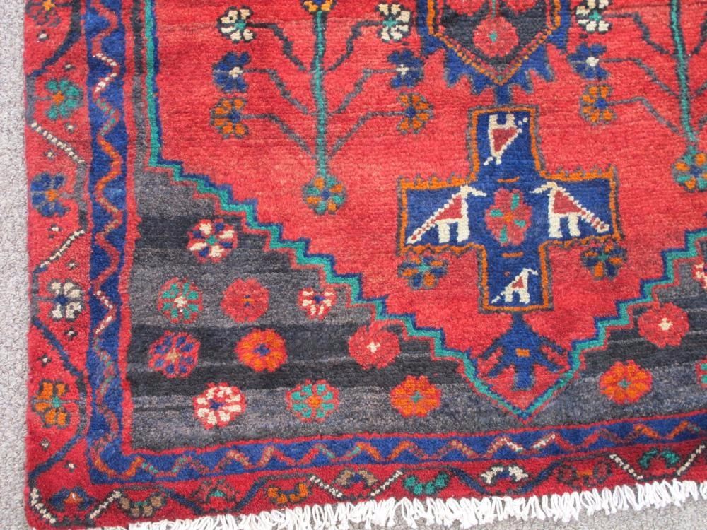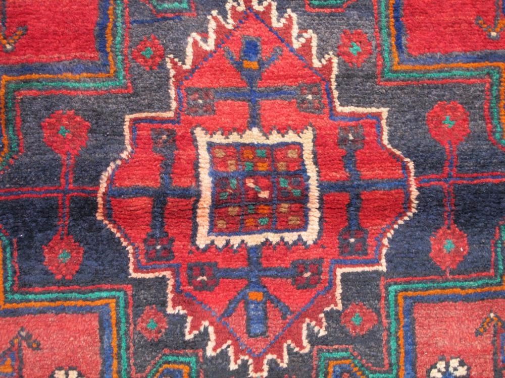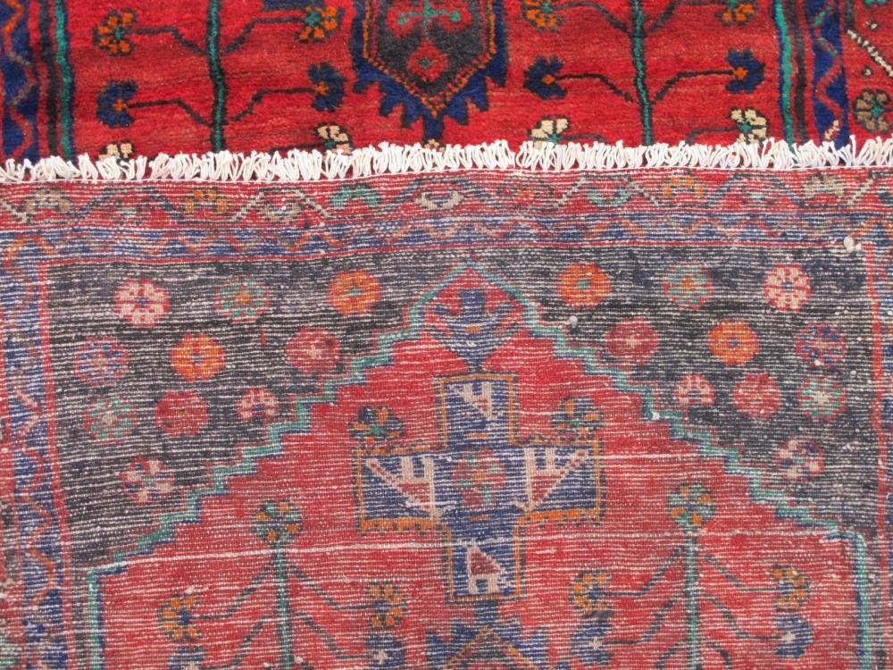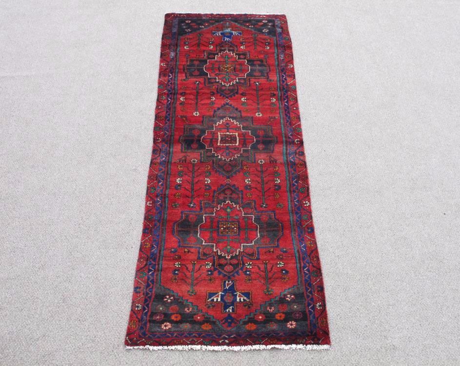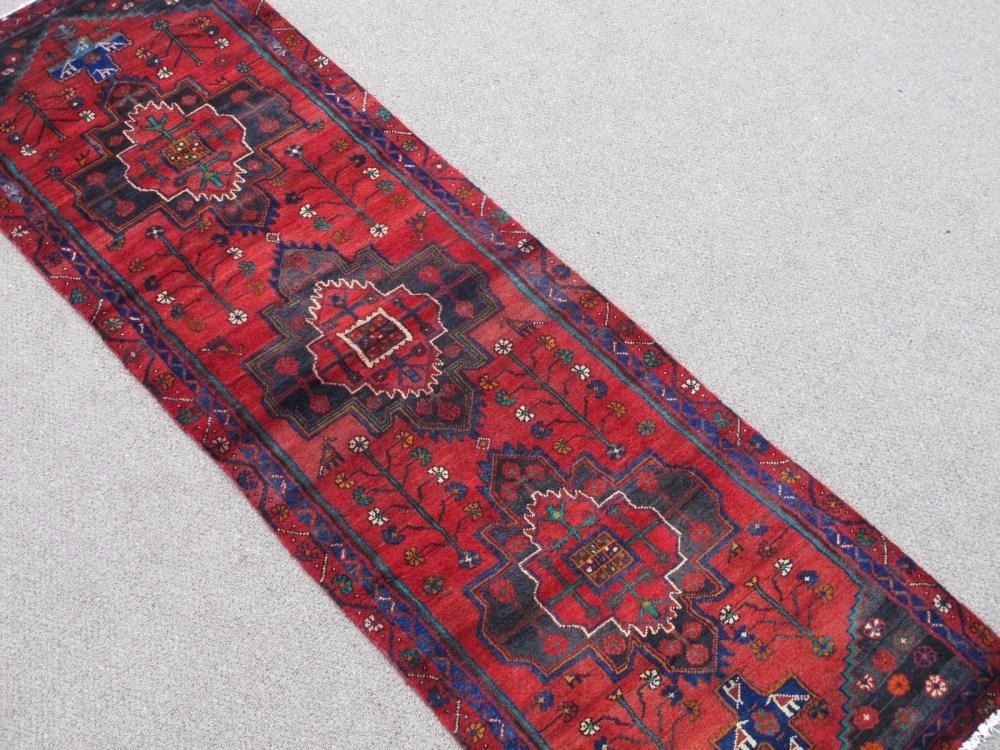 Rug: Handmade Semi Antique Persian Hamadan Rug; Material: Fine quality baby lamb's wool pile, all natural vegetable dye; Size: 9.4 x 3.0 feet; Foundation: Cotton; Design: Persian Hamadan; Origin: Iran