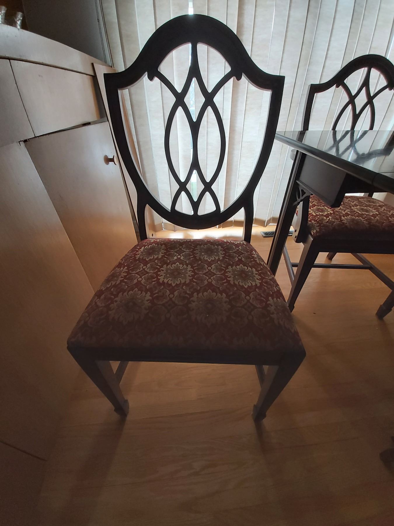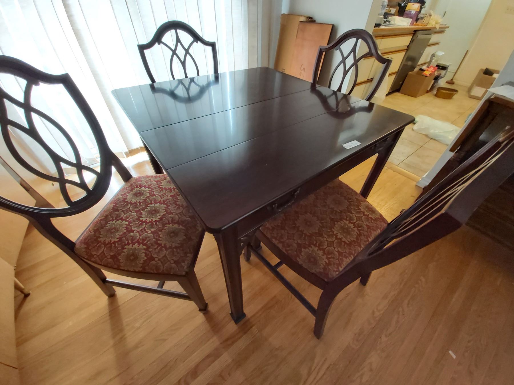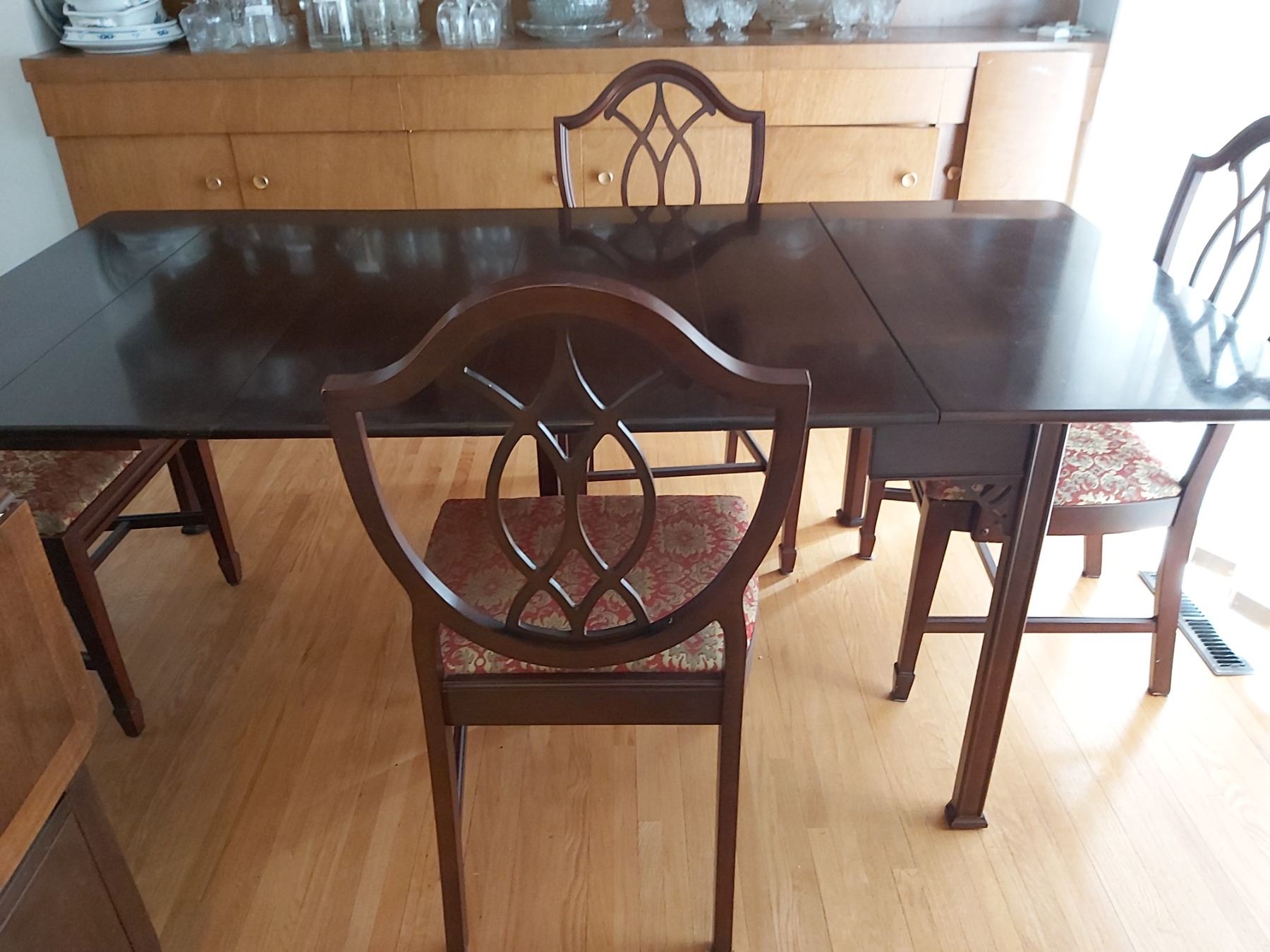 Stunning Dining Table & 4 Chairs with Hidden Compartment. Table has 4 table leaves. Fully Extended table is 76" long 38" wide x 29 1/4" high