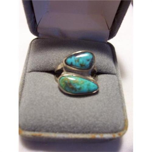 Vintage Native Indian Sterling Silver Turquoise ring. Two large Turquoise stones. Larger stone is 1/2 inch long. Size 9.