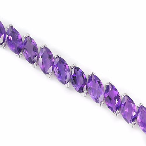 NATURAL PURPLE AMETHYST 925 SILVER BRACELET 14K WHITE GOLD COATING; LENGTH OF ITEM (Inch.) 7.75; ITEM QUANTITY 1; STONE SHAPE- MARQUISE PORTUGESE CUT; STONE DIMENSION10 X 5 MM.; MAIN STONE WEIGHT-27.57 CARAT; COLOR- INTENSE PURPLE;CLARITYIF - VVS;LUSTER- GRACEFUL; TREATMENT-UNHEATED; ORIGIN OF STONE- BOLIVIA; HARDNESS 7.0; TOTALWEIGHT 21.80 Grams