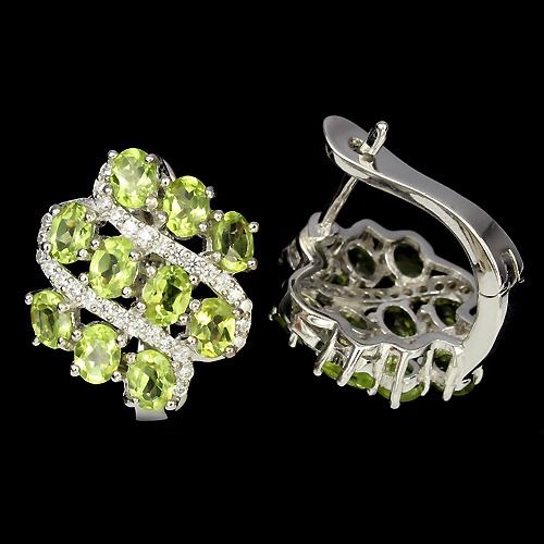 PERIDOT (NATURAL) & CUBIC ZIRCONIA 14K WHITE GOLD PLATED 925 SILVER EARRINGS;UNIT OF ITEM (S):2 PIECES;WEIGHT (CT.):33.92 CT. (total weight of silver + stone);DIMENSION:* STONE 4.0 X 3.0 MM. * CZ 1.0 MM. * FACE ; EARRINGS 17.0 X 15.0 MM.;SHAPE/CUT:OVAL FACET & ROUND DIAMOND CUT;COLOR:TOP RICH GREEN & AAA WHITE;CLARITY/GRADE:IF TO VVS;LUSTER:GORGEOUS;TREATMENT:UNHEATED;ORIGIN:PAKISTAN;HARDNESS:6.5 - 7.0