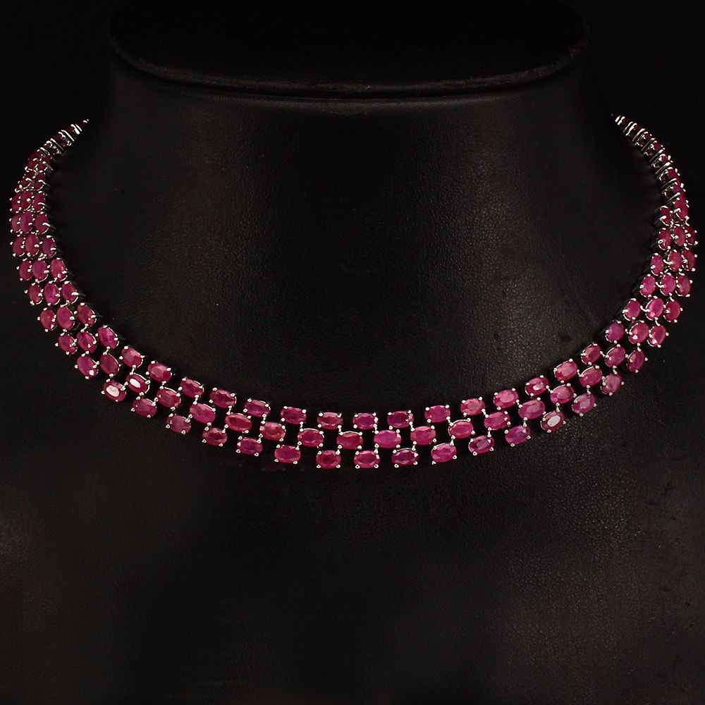 925 STERLING SILVER..........PLATE-14K WHITE GOLD;LENGTH (INCHES)21;MAIN STONE-RUBY;TOTAL WEIGHT-207.13 CT (TOTAL WEIGHT OF SILVER + STONE)DIMENSION* STONE 5.0 X 3.0 MM. * STONES PART LENGTH 463.0 X 11.0 MM.MAIN STONE SHAPE-OVAL CUT;MAIN STONE COLOR-TOP RICH RED PINK;CLARITY/GRADE-TRANSPARENT;LUSTER-MAGNIFICENT;TREATMENT-HEATED;ORIGIN-MADAGASCAR;HARDNESS-9;