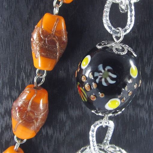 Necklace Size Ajutable 26 inch *Stone Name Lampwork Bead *Stone Overall Dimension for each bead 20x20x19 mm (0.787x0.787x0.748 inch ) *Weight 685 ct/ 137 g/ 4.832538 ozOther Stones used in this Necklace Lampwork Bead*Center Stone Properties~~~~~~~~~(+) Each step of our Lapidary work is under tight quality control . With the best pattern-color combination possible in mind the initial cut was done by experienced lapidary ... The last-step diamond polishing makes the surface of each bead/cab mirror-like glossy that meet the highest standard possible. Finally only those met all quality requirements are selected.