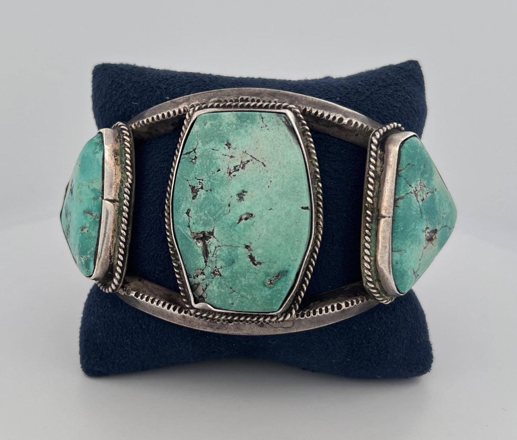 Drop dead gorgeous and impressive. Large stones. Signed. 2.25" wrist opening, bangle is 2" wide.