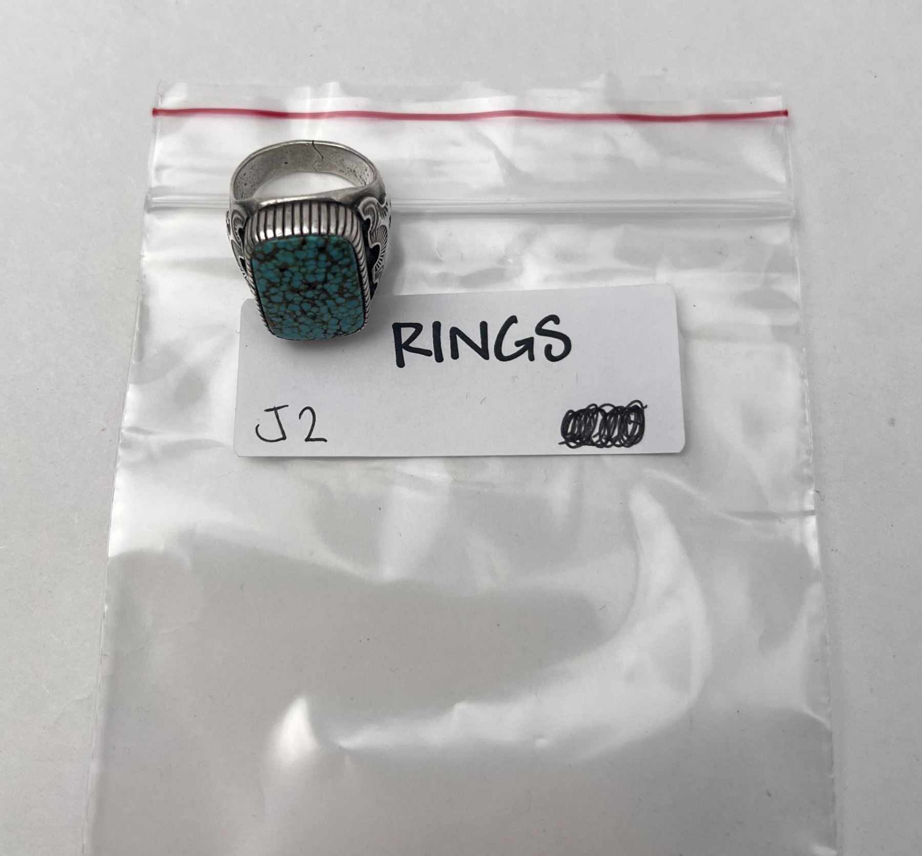Spiderweb Turquoise. Signed JA. Size 10 1/2.