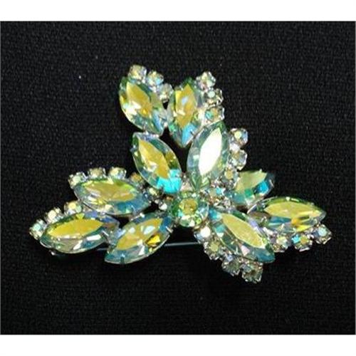 STUNNING VINTAGE RHINESTONE BROOCH BROOCH,IT IS MADE FROM EXQUISITE IRIDESCENT FACETED VARIOUS SIZES STONES, as per images,Mde by JAYKEL ORIGINAL, I understand very rare piece by this maker, Excellent condition,THE BROOCH IS STUNNING WITH SUPERB QUALITY AND DETAIL!,Measuring about 2 1/4" x 1 1/2",US Buyer to pay 7.00 for shipping plus insurance.THANKS.