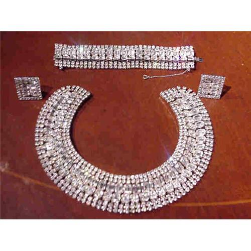 Stunning Rhinestone Set including a necklace, bracelet and earring clips, Circa 1940's to 1950's. This set looks like Isenburgh, but has no markings and is one of the largest pieces of fine Rhinestone sets!