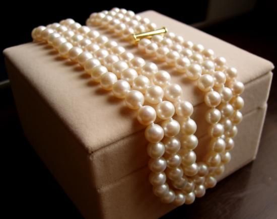 Stunning THREE STRAND GENUINE AKOYA WHITE PEARL NECKLACE MWF1042