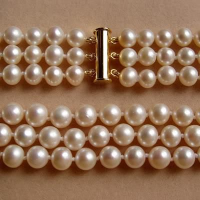 Stunning THREE STRAND GENUINE AKOYA WHITE PEARL NECKLACE MWF1042