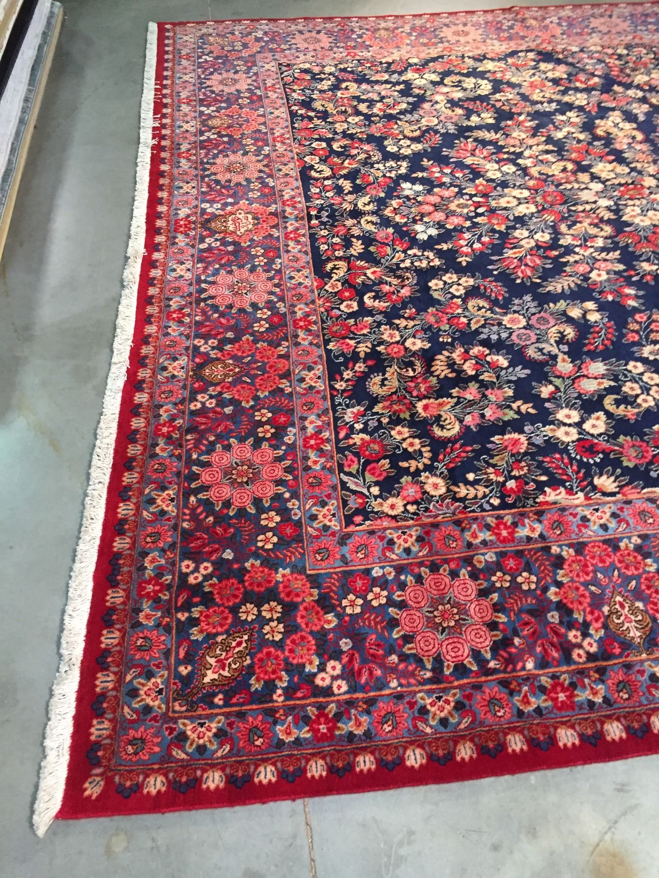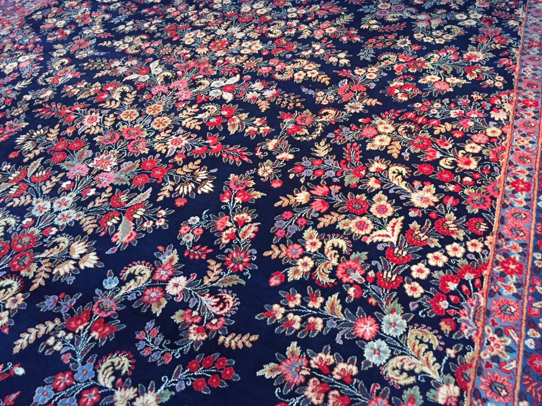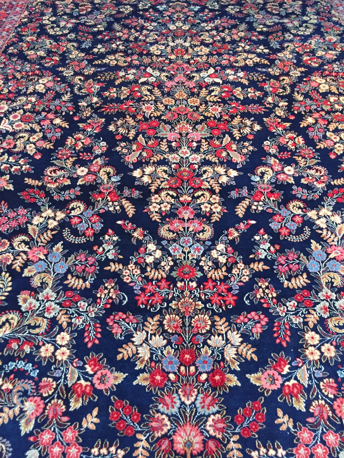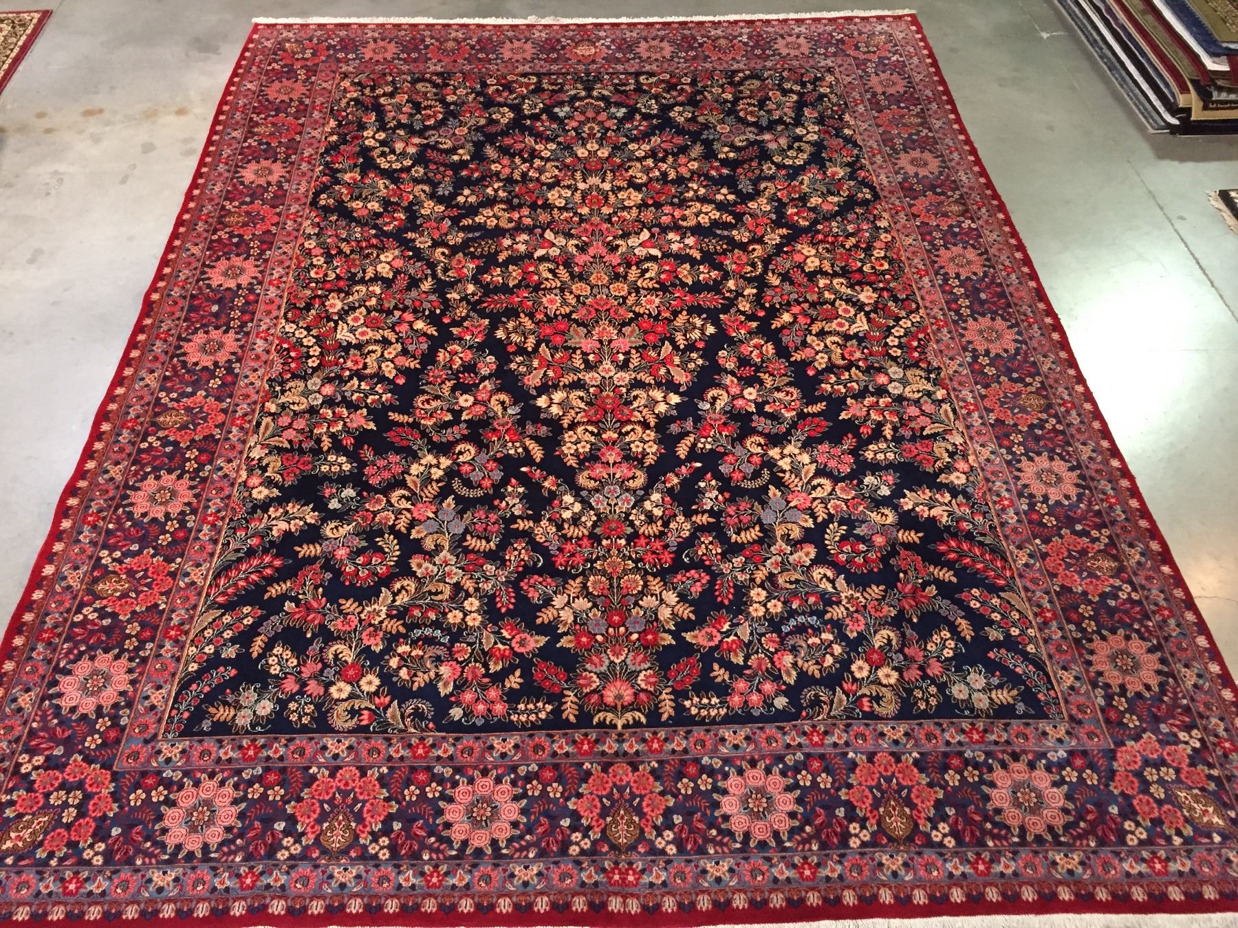9'.9"X13'.9" Collectible unique, Fine Authentic Persian Mood rug 100% wool pile in, Navy and colrful accent colors Hand Knotted in Iran