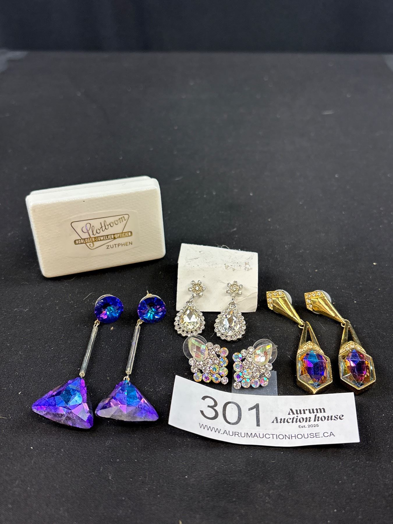 Stunning Vintage Rhinestone Runway Fashion Earring Lot, Quality!