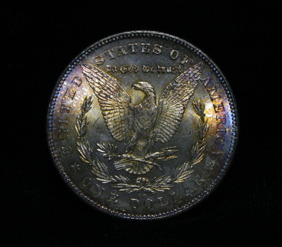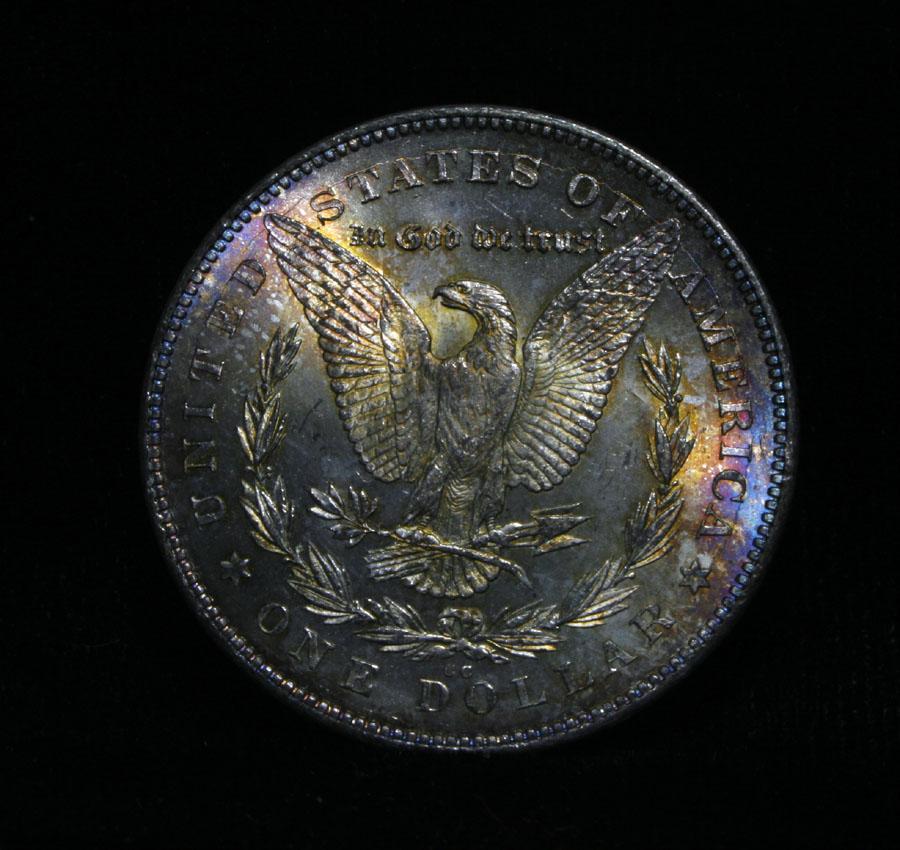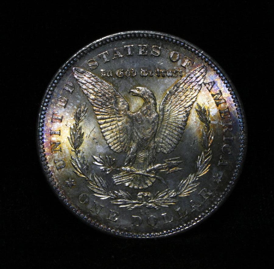 Beautiful blues, oranges, reds and yellows on the reverse, 100% Original Carson City Morgan, This coins is fully gradable with original toning and I will buy it back if it comes back Ungradeable. A beautiful example. Coin World's Coin Values lists ms64 at $700 and The Wholesale Greysheet lists ms64 at $420. Those figures do not take into account the wonderful color throughout the coin. Estimated Value $750
