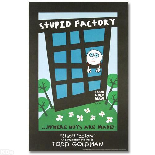ADD THE IRREVERENT ARTWORK OF WORLD-RENOWNED ARTIST TODD GOLDMAN TO YOUR COLLECTION! Pop artist Todd Goldman is known all across the globe for his whip-smart and wickedly funny puns and pictures! "Stupid Factory, Where Boys Are Made!" is a fine art litho poster hand signed by Todd. Measures approx. 24" x 36" (poster).