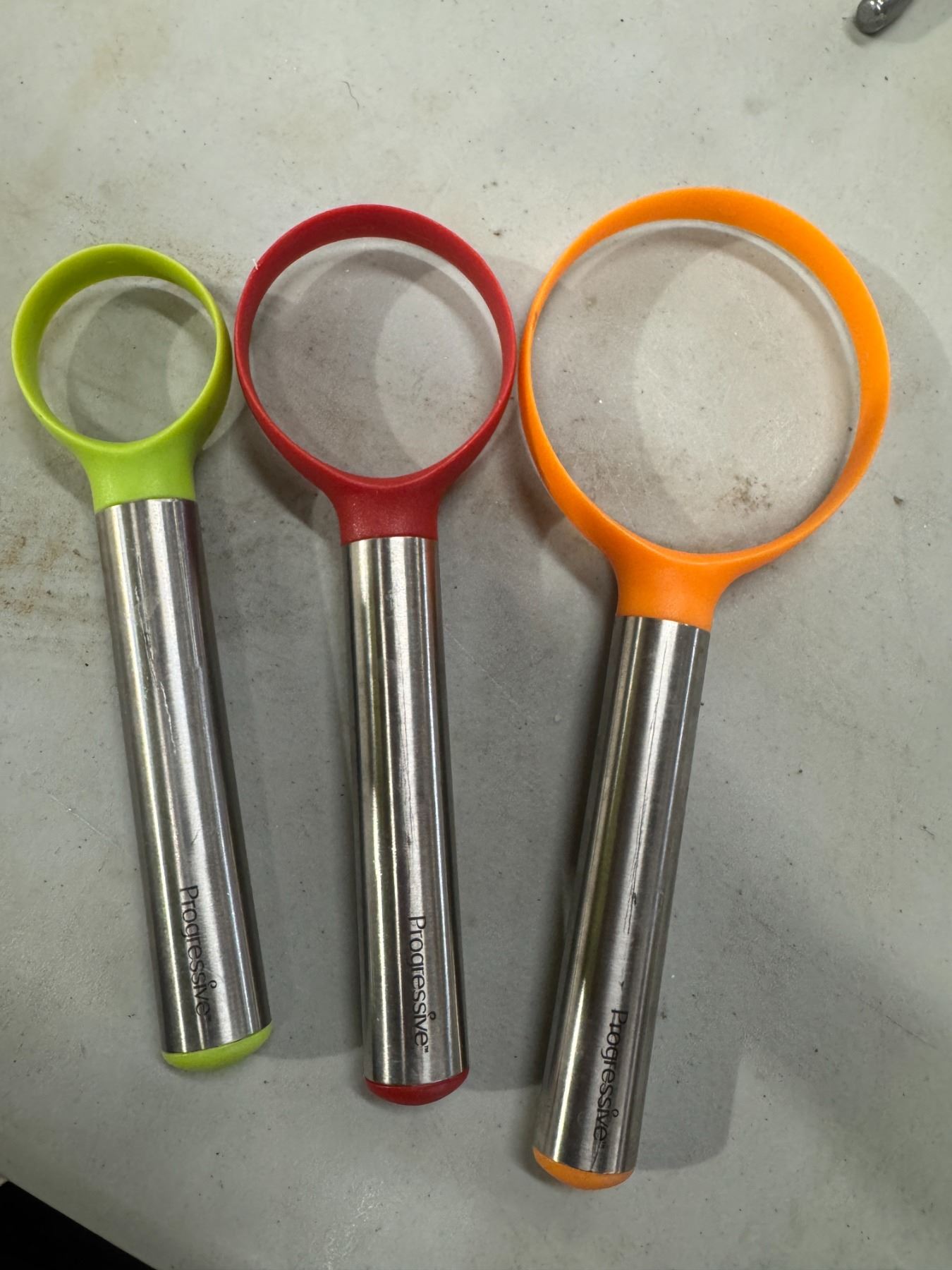 Sturdy PROGRESSIVE International Fruit Scoops (GUC) 8-1/2", 7-1/2", 6-3/4"