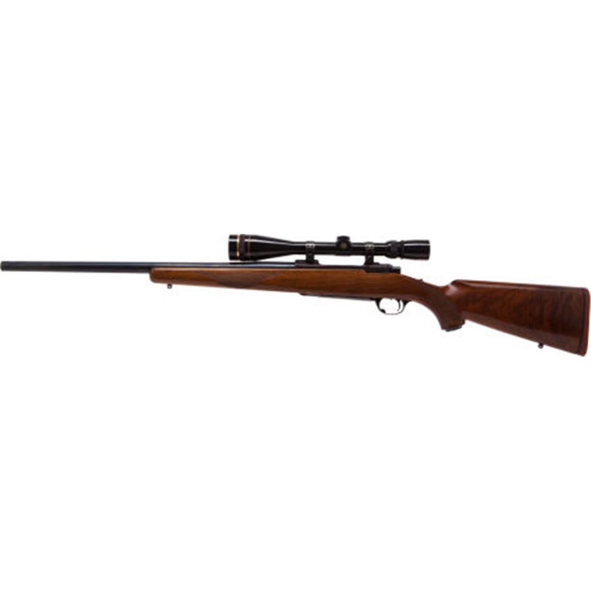 Sturm-Ruger Model M77V Bolt Action Rifle with Telescopic Sight. Serial No. 72-62039, .25-06 Remington caliber, 22-inch blued barrel mounted with a Leupold Vari X III 6.5 X 20 telescopic sight. Plum brown frame. Polished steel bolt. Checkered walnut pistol-grip stock with rubber buttplate and sling eyes. Condition: Fine as configured. Retaining approximately 90-95% finish with scattered light wear. Wood refinished. Action good. NRA FIREARMS FOR FREEDOM PROGRAM