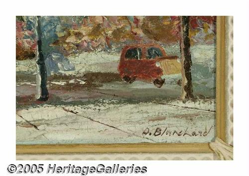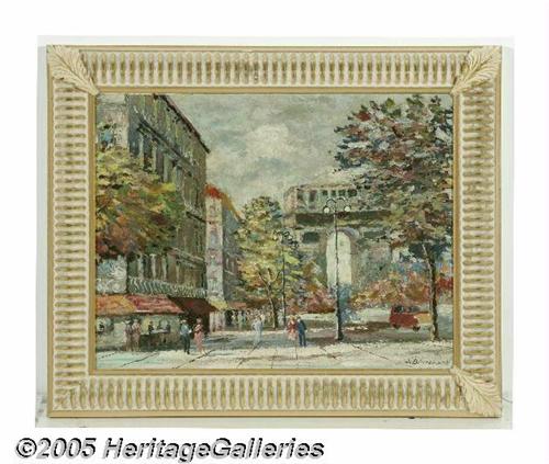 <B>Style of ANTOINE BLANCHARD</B></I><BR>Champs Elysees<BR>Oil on board<BR>14in. x18in.<BR>Signed lower right 'A. Blanchard'<BR><BR>Condition report: Canvas laid down on board, surface is crazed from adhesion to board.<BR>